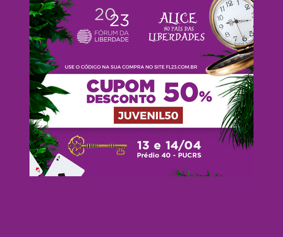Novidade para associados ALJ que querem garantir seu lugar no tradicional Fórum da Liberdade: 50% de desconto para inscrição na edição, programada para 13 e 14 de abril, na PUCRS.