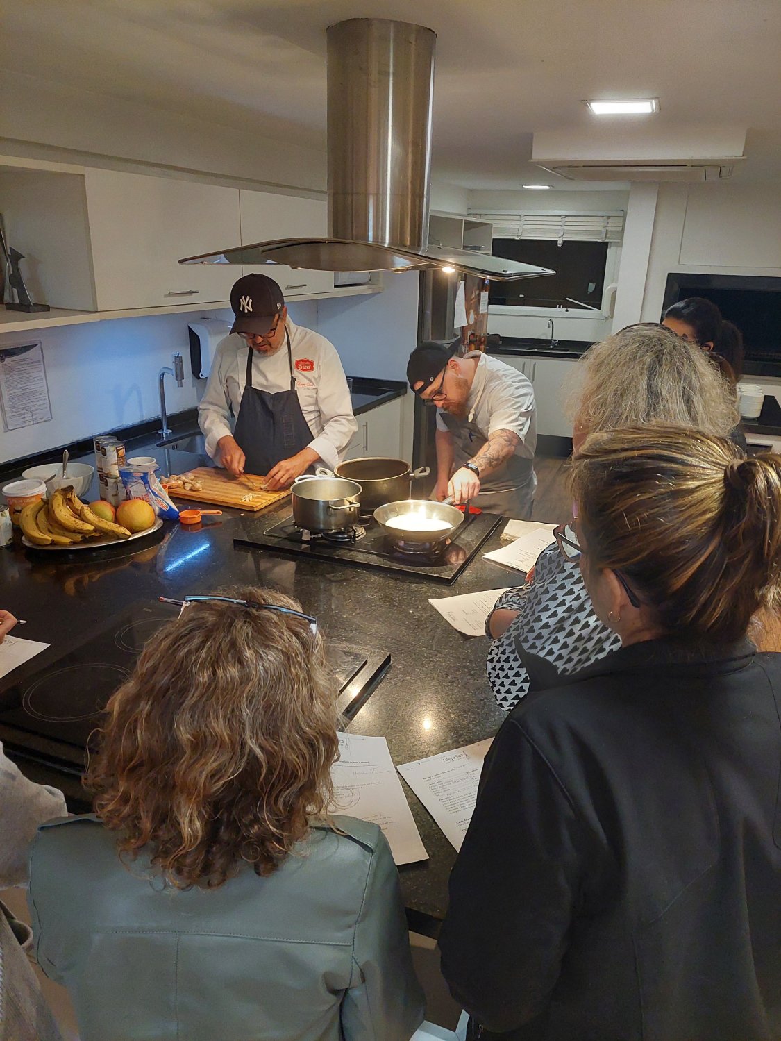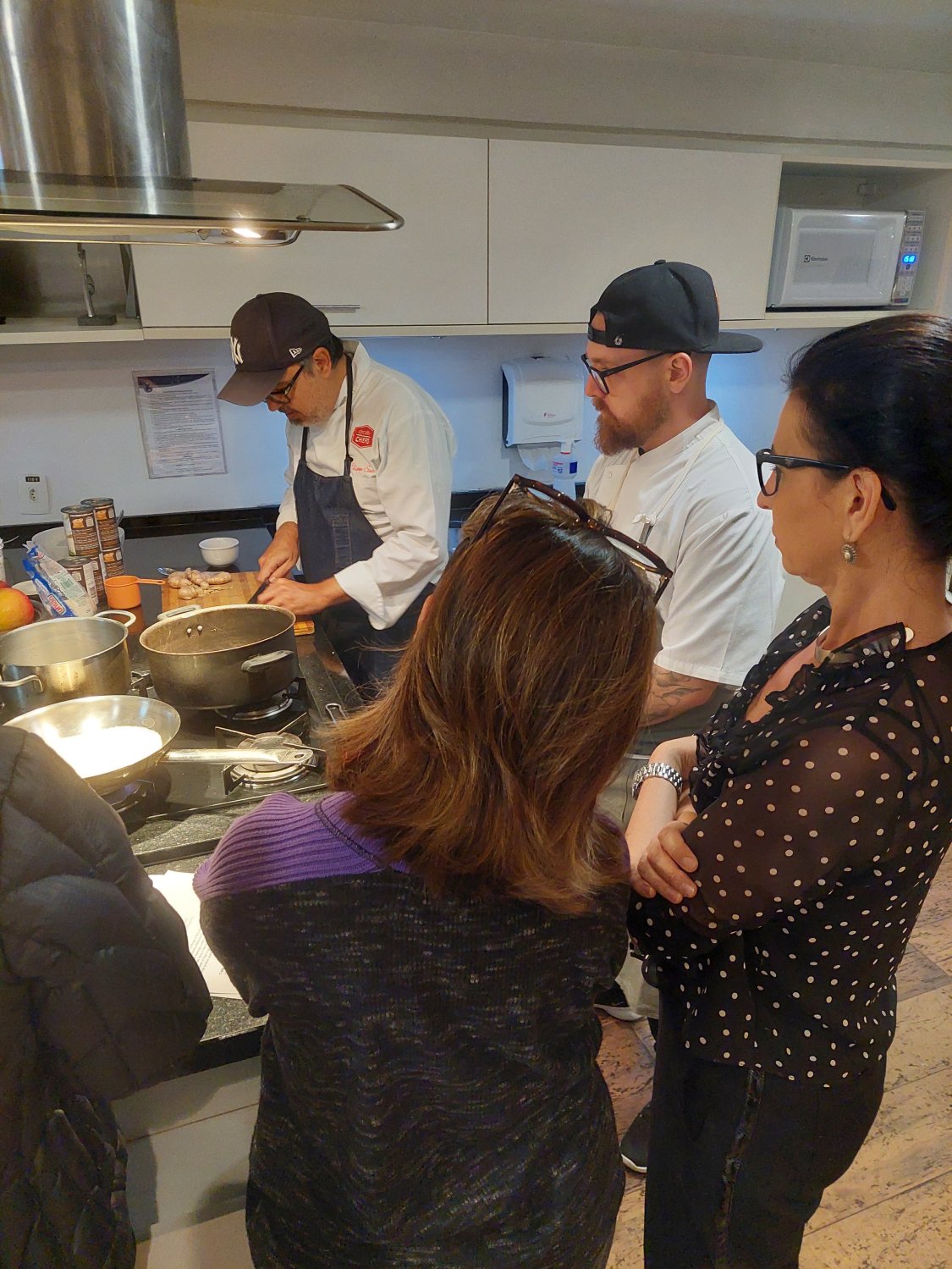 Os alunos atentos aprenderam três receitas deliciosas de doces tailandeses com o chef Felipe di Sicca.
